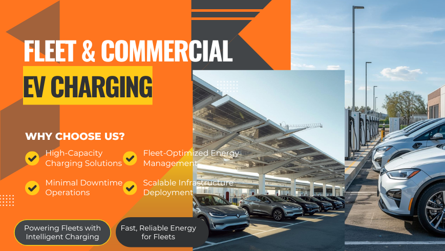 We deliver end-to-end Fleet & Commercial EV Charging Infrastructure Solutions designed to enhance charging efficiency, energy optimization, operational reliability, revenue potential, and long-term scalability for commercial EV ecosystems.