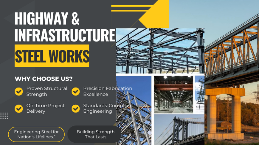 We are a leading Manufacturer and Exporter of Highway & Infrastructure Steel Works, delivering high-strength structural solutions for highways, expressways, bridges, flyovers, metro projects, industrial corridors, and large-scale infrastructure developments. Our steel infrastructure systems are engineered to provide durability, load-bearing strength, impact resistance, and long-term performance under heavy traffic and environmental stress conditions.