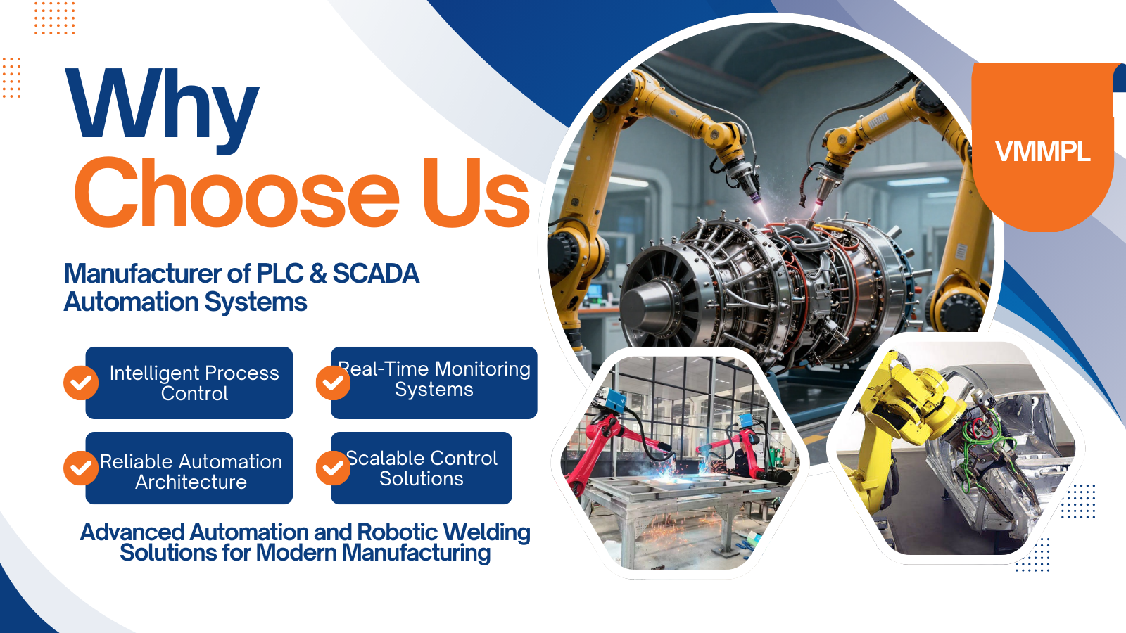 We specialize in delivering advanced Machine Automation, Industrial Automation & Robotic Welding Solutions, along with fully integrated PLC & SCADA Automation Systems for manufacturing, heavy engineering, automotive, steel processing, renewable energy, and infrastructure industries. Our automation solutions are designed to improve productivity, reduce manual intervention, enhance precision, and ensure consistent process control in modern industrial environments.