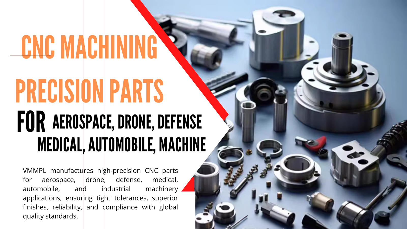 We at VMMPL specialize in delivering comprehensive CNC Precision Machining Solutions that support businesses across the entire product lifecycle—from advanced engineering design and rapid prototyping to high-accuracy manufacturing and large-scale volume production. Backed by advanced CNC infrastructure and stringent quality control systems, we serve performance-critical industries globally, including aerospace, defense, automotive, renewable energy, industrial machinery, and medical equipment manufacturing.
