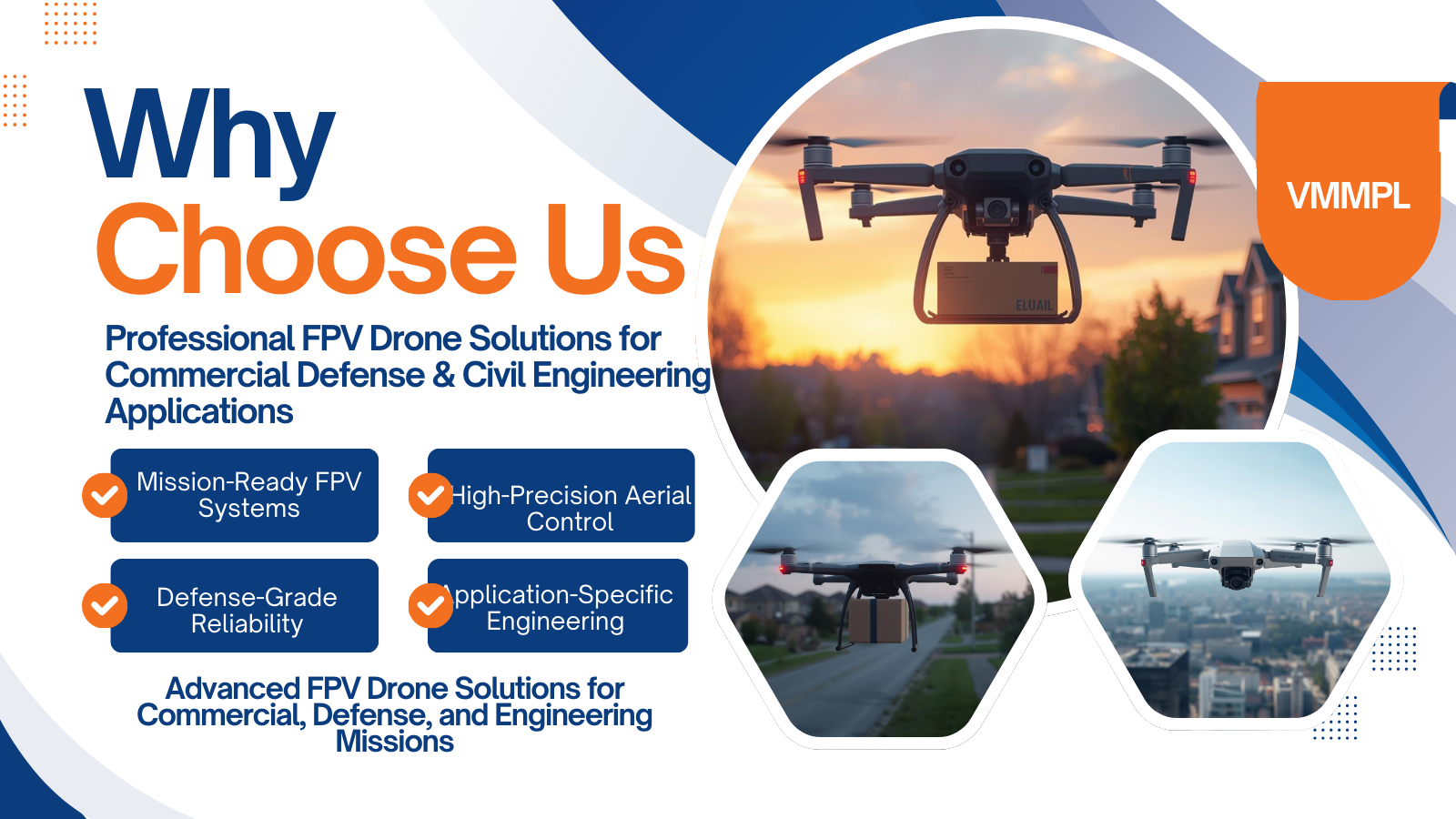 Backed by engineering expertise and a commitment to quality, VMMPL aims to build long-term partnerships by providing scalable drone solutions that enhance operational efficiency, safety, and technological capability for clients worldwide.