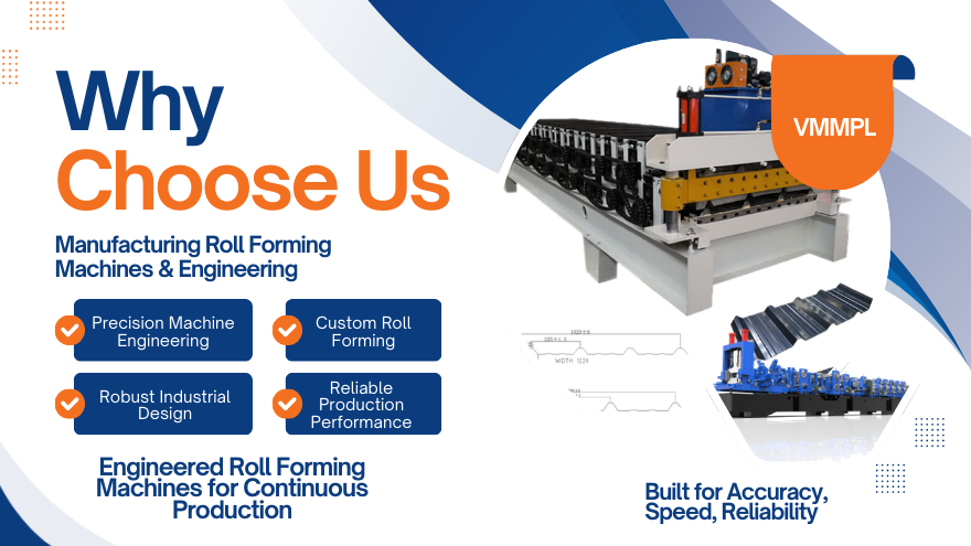 Our Metal Roof Roll Forming Machines deliver high productivity, precise profile accuracy, low maintenance, and long-term durability—making them ideal for modern roofing sheet manufacturing industries.